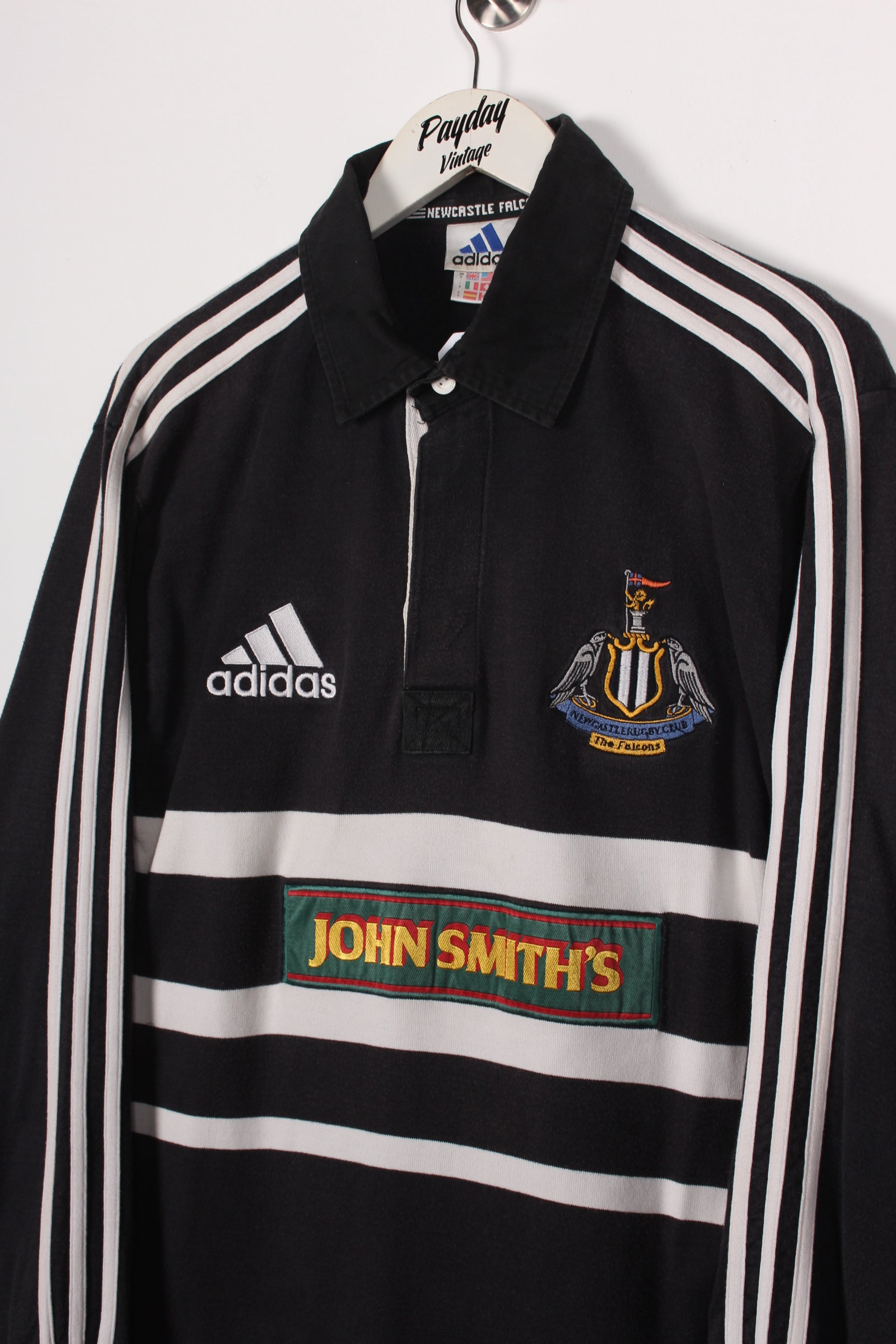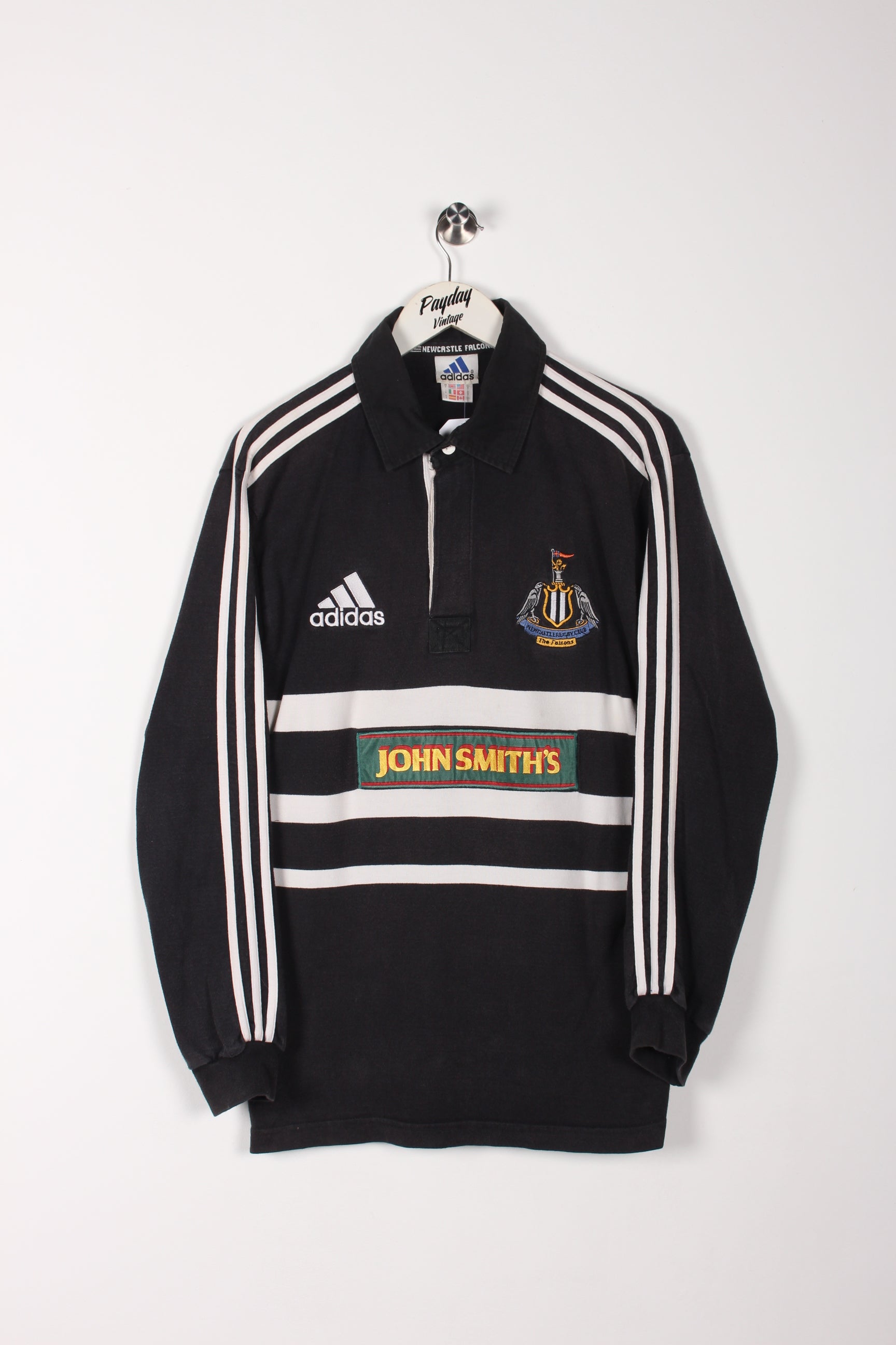 90's Adidas Newcastle Falcons John Smiths Rugby Shirt Black Medium